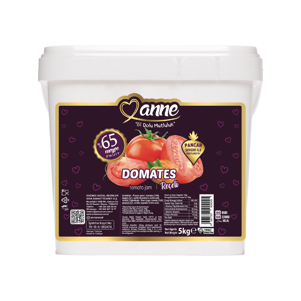 Ana Sayfa Kova Ürünler Domates Reçeli 5000 G (%65 Meyveli)